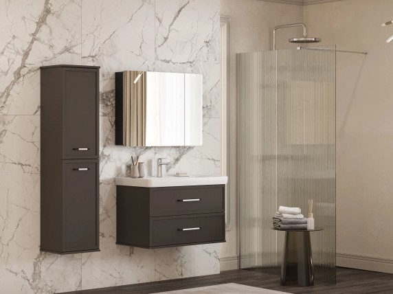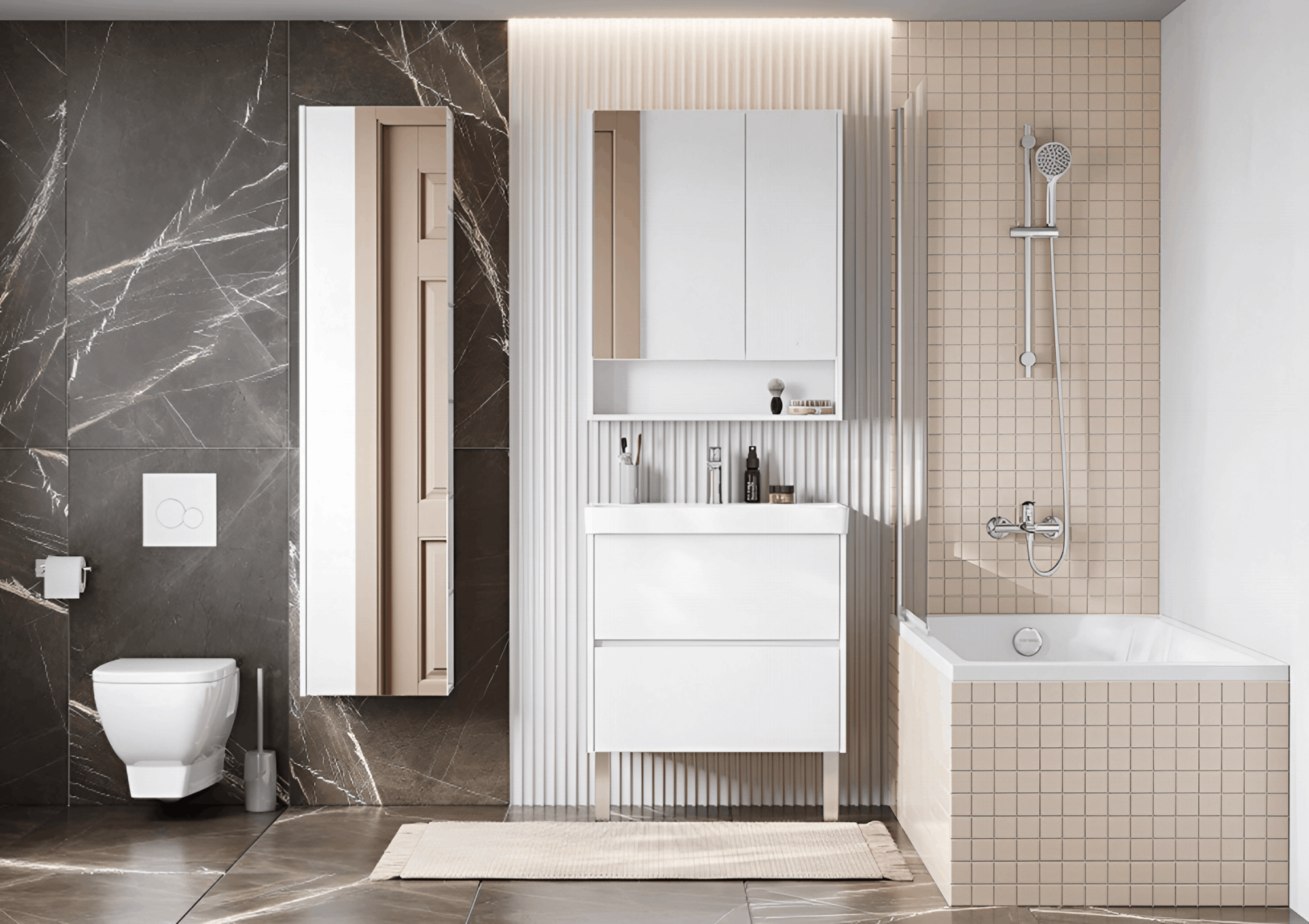 Начните с размеров. Ширина шкафа не должна быть больше ширины умывальника — лучше, если он будет чуть уже или точно совпадать. Для маленькой ванной достаточно модели 50–60 см, для просторной можно взять от 80 см и шире.