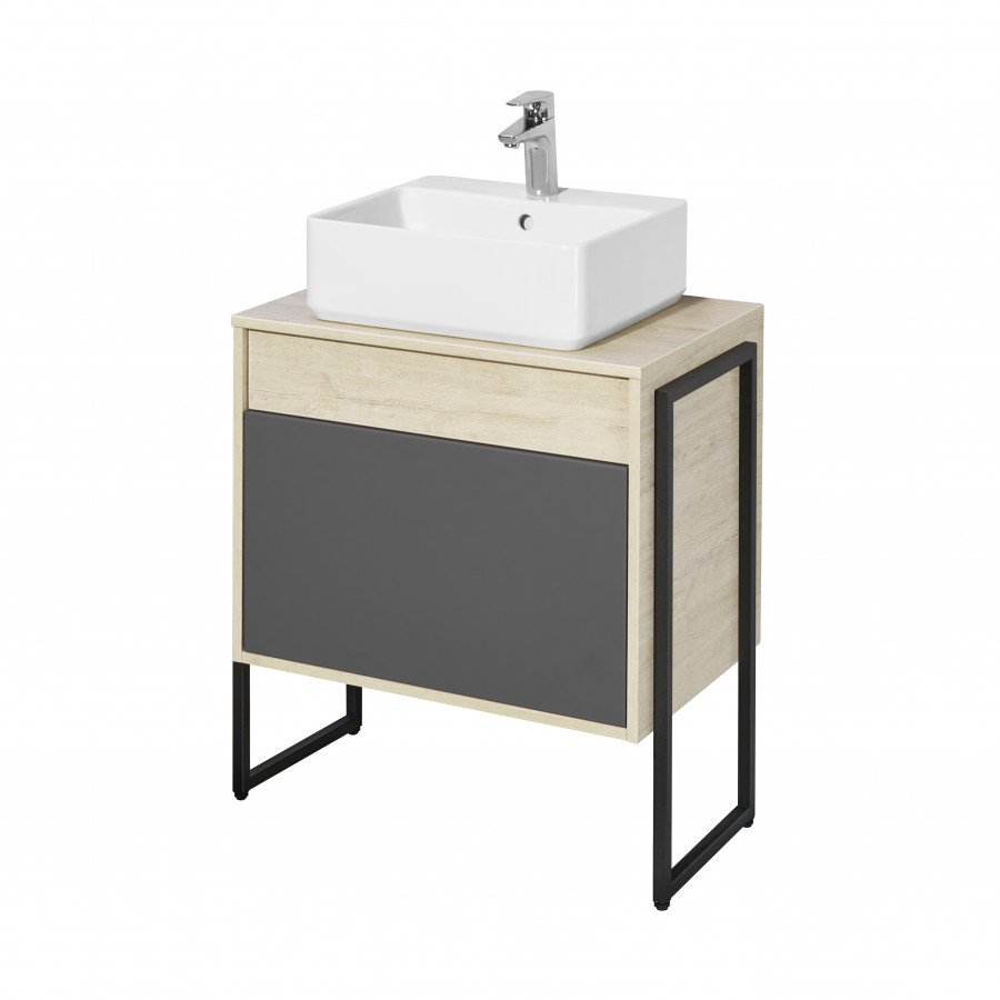 В дополнение к подвесному модулю можно приобрести комплект высоких или низких опор для создания популярного стиля Лофт в ванной комнате.
