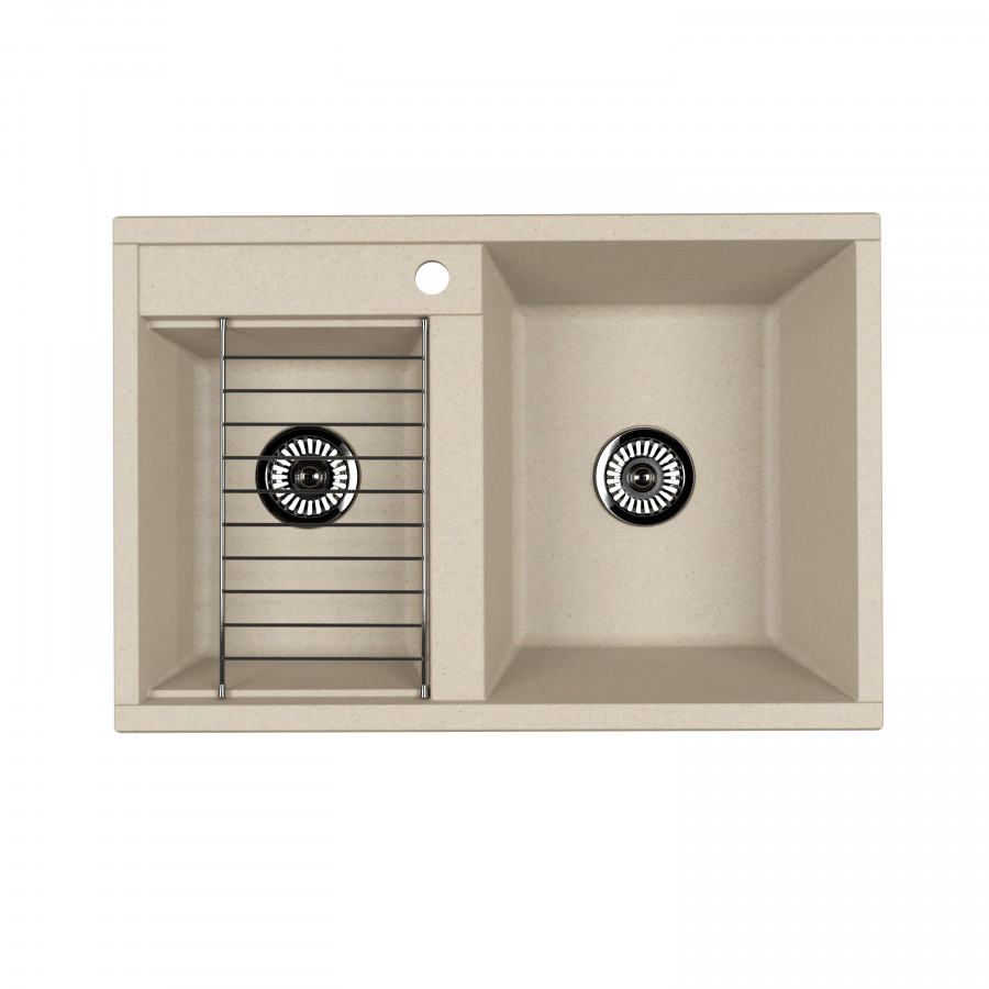 Кухонная мойка из литого мрамора в современном минималистичном дизайне с двумя чашами и дополнительным аксессуаром - решеткой из нержавеющей стали. Покрытие Gelcoat обеспечивает высокую устойчивость к механическим воздействиям, которым подвергается поверхность мойки в процессе эксплуатации. Является стойким к большинству агрессивных и красящих веществ. Мойка обладает высокими бактерицидными свойствами и является экологически чистым изделием. Устойчива к резким перепадам температур.