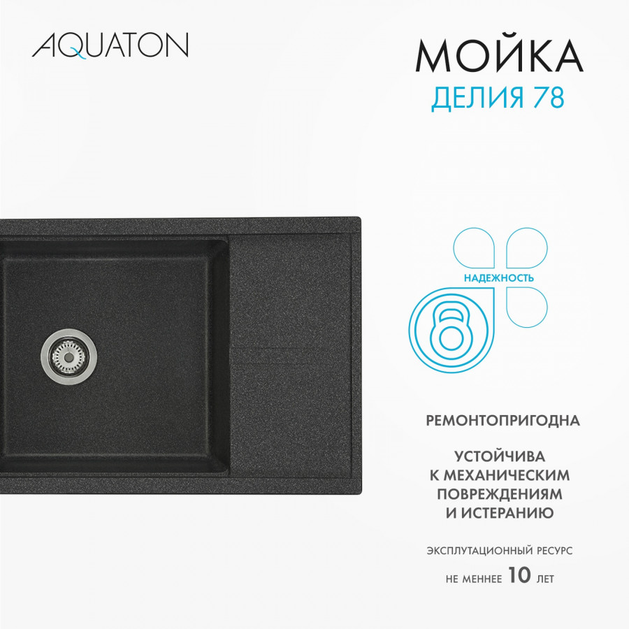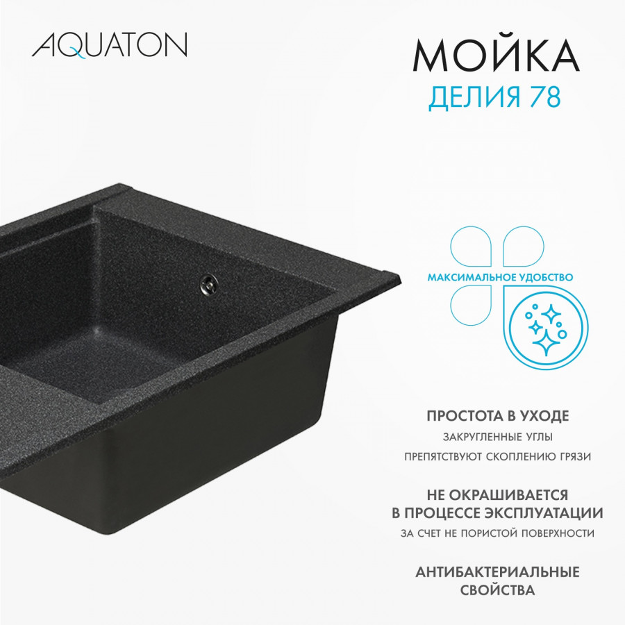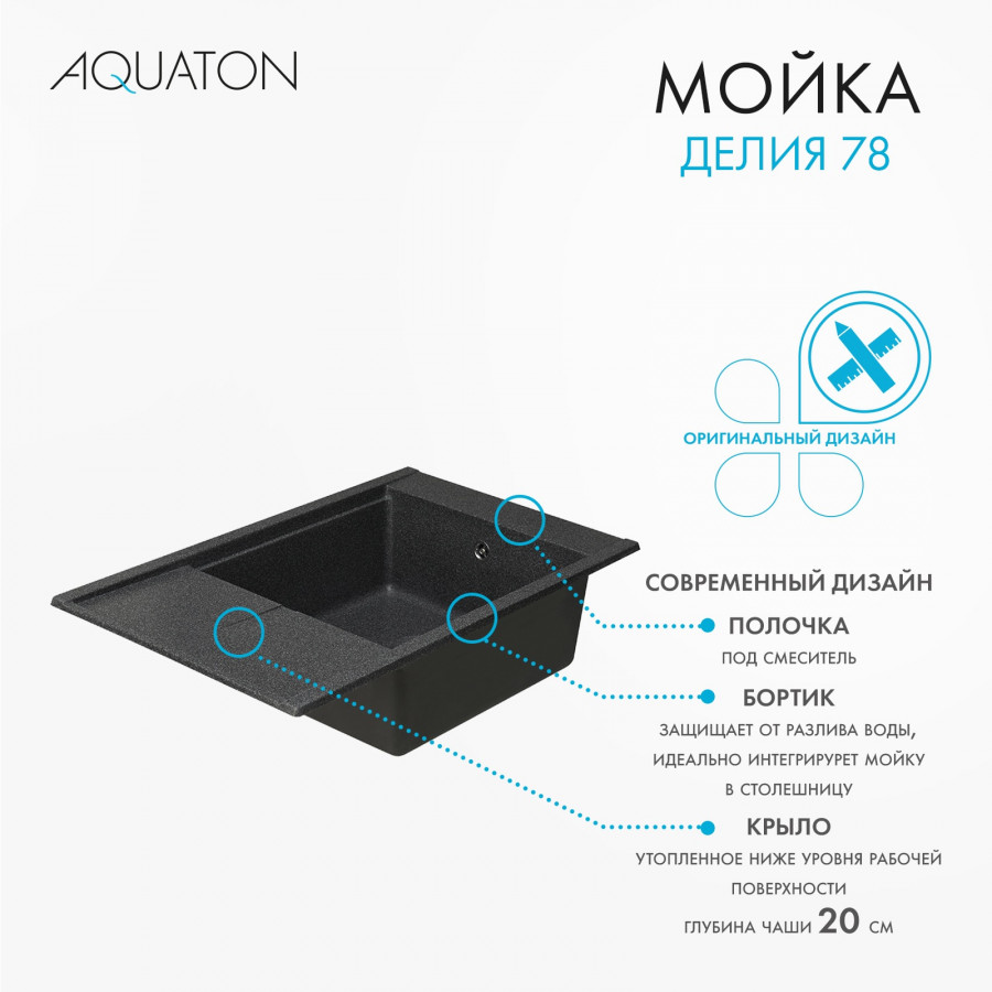 Мойка для кухни AQUATON Делия 78 прямоугольная с крылом графит 1A715132DE210