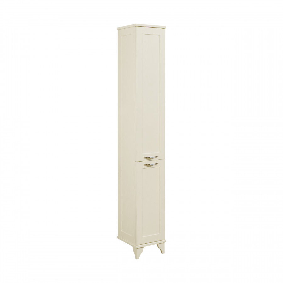 Напольный шкаф-колонна Леон выполнен в классическом стиле в теплом цвете дуб бежевый из высококачественной МДФ, оснащен изящной фурнитурой с цветочным орнаментом и имеет матовое влагостойкое покрытие. За верхним фасадом располагаются полки, на которых удобно разметить необходимые в ванной комнате принадлежности, в нижней части шкафа, помимо полок, имеется вместительный выдвижной ящик для мелочей. Данный шкаф может быть как в левом, так и в правом исполнении, а поскольку его петли оснащены механизмом плавного довода, это обеспечивает мягкое и бесшумное закрывание дверок.