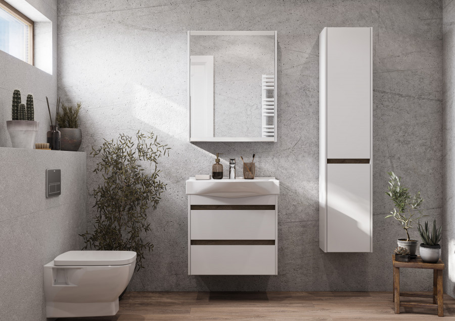 Шкаф-колонна Нортон в современном стиле выполнена из влагостойкой ЛДСП и высококачественной MDF. Внутреннее пространство колонны разделено на 2 отделения с помощью декоративной вставки в цвете дуб эндгрейн, створки оборудованы петлями с доводчиками для комфортного использования. За фасадами шкафа-колонны находятся вместительные отделения со стеклянными регулируемыми по высоте полками. Шкаф-колонна окрашена в белый глянцевый цвет полиэфирной краской ультрафиолетового отверждения, что обеспечивает повышенную износостойкость и долговечность.