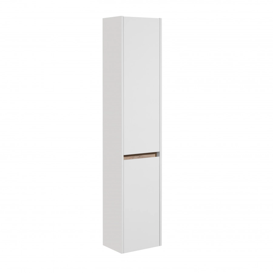 Шкаф-колонна Нортон в современном стиле выполнена из влагостойкой ЛДСП и высококачественной MDF. Внутреннее пространство колонны разделено на 2 отделения с помощью декоративной вставки в цвете дуб эндгрейн, створки оборудованы петлями с доводчиками для комфортного использования. За фасадами шкафа-колонны находятся вместительные отделения со стеклянными регулируемыми по высоте полками. Шкаф-колонна окрашена в белый глянцевый цвет полиэфирной краской ультрафиолетового отверждения, что обеспечивает повышенную износостойкость и долговечность.
