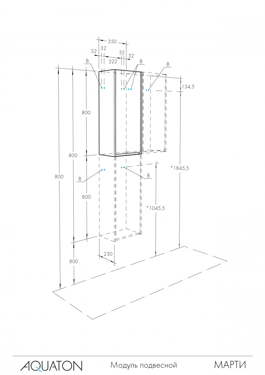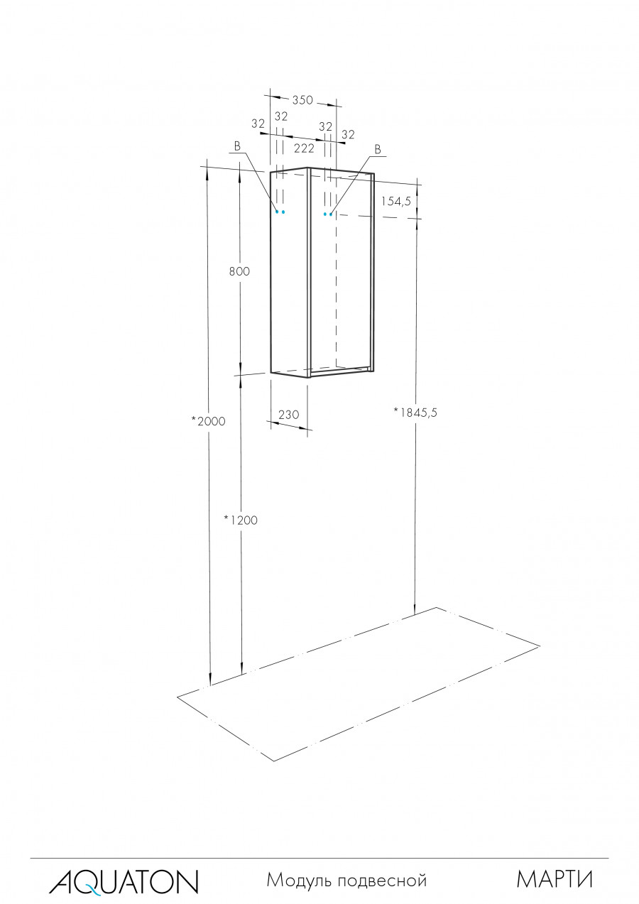 Дополнительное место для хранения можно получить благодаря подвесному модулю, выполненному в дизайне коллекции. Древесная вставка в цвете дуб эндгрейн в модуле МАРТИ кроме декоративной функции также служит ограничителем, предотвращая падение предметов.