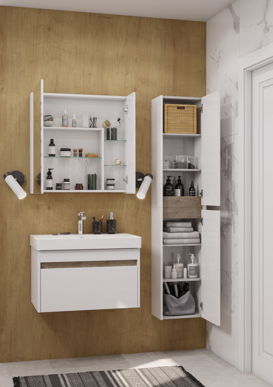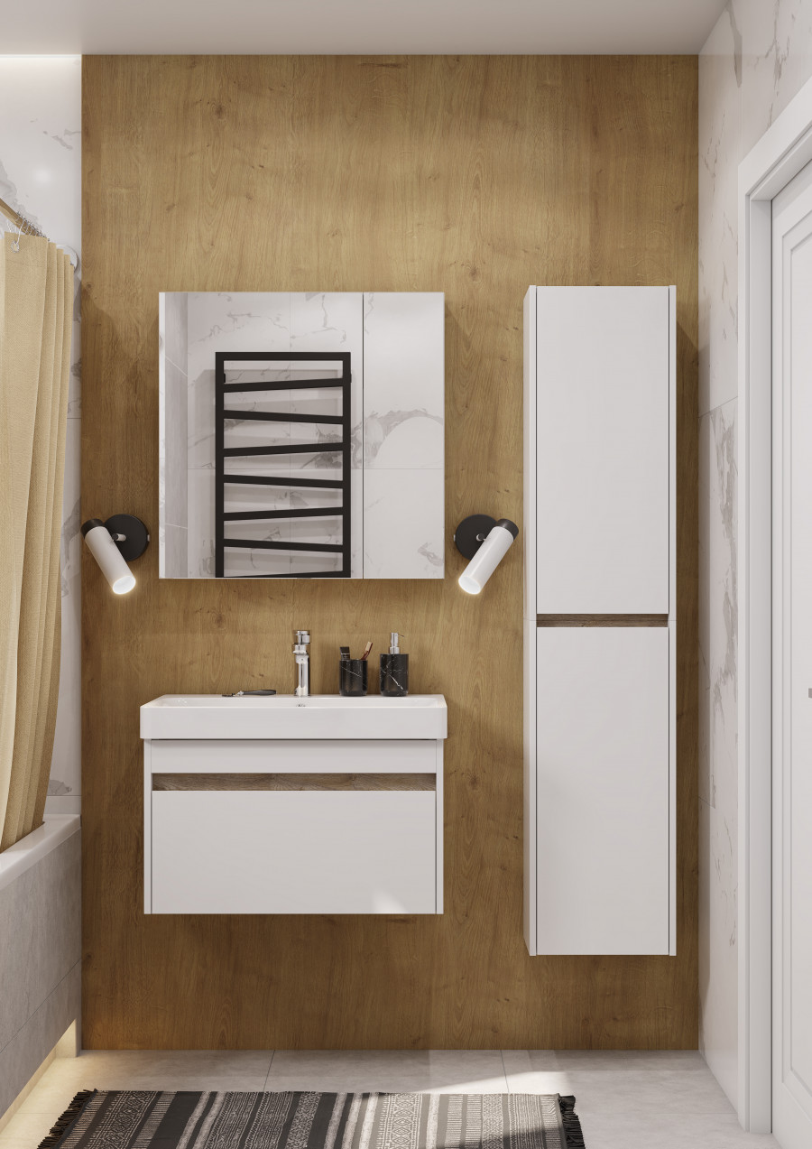 Шкаф навесной AQUATON Марти белый глянец, дуб эндгрейн 1A270203MY010