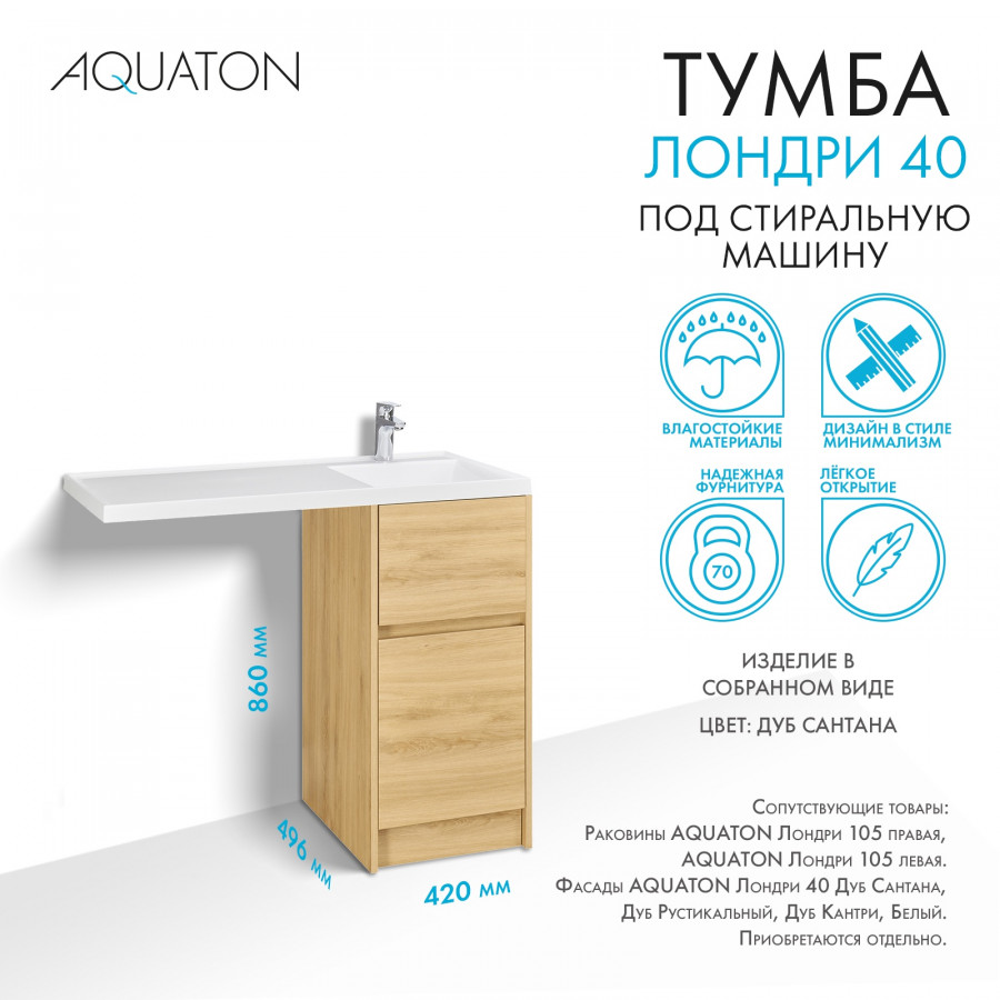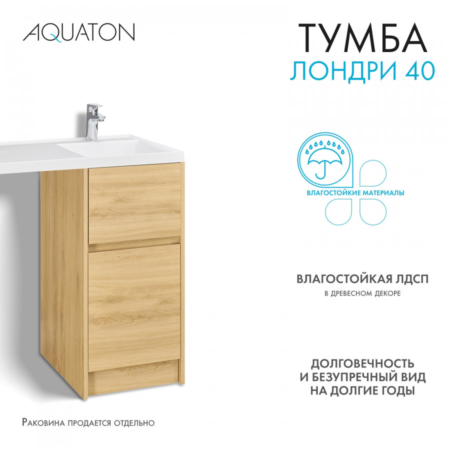 Корпус тумбы под раковину AQUATON Лондри 40 Дуб Сантана без фасада 1A267001LH0C0