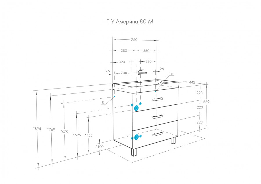 Современная лаконичная модель тумбы AQUATON Америна 80 М с тремя ящиками имеет ширину 80 см и выполнена в черном глянцевом цвете. Корпус изготовлен из влагостойкой ЛДСП, а фасад - из высококачественной МДФ. Модификация на двух изящных ножках удобна для ванных комнат, где нельзя использовать подвесную мебель. Направляющие нижнего крепежа обеспечивают жёсткое и надежное крепление ящиков, а встроенные доводчики гарантируют их бесшумное и плавное закрывание. Дополнительно организовано нижнее подключение труб водоснабжения и канализации. Корпус и фасады покрыты полиэфирной краской ультрафиолетового отверждения, обеспечивающей дополнительную защиту от влаги. Для комплектации тумбы предлагается раковина Santek Тигода 80.
