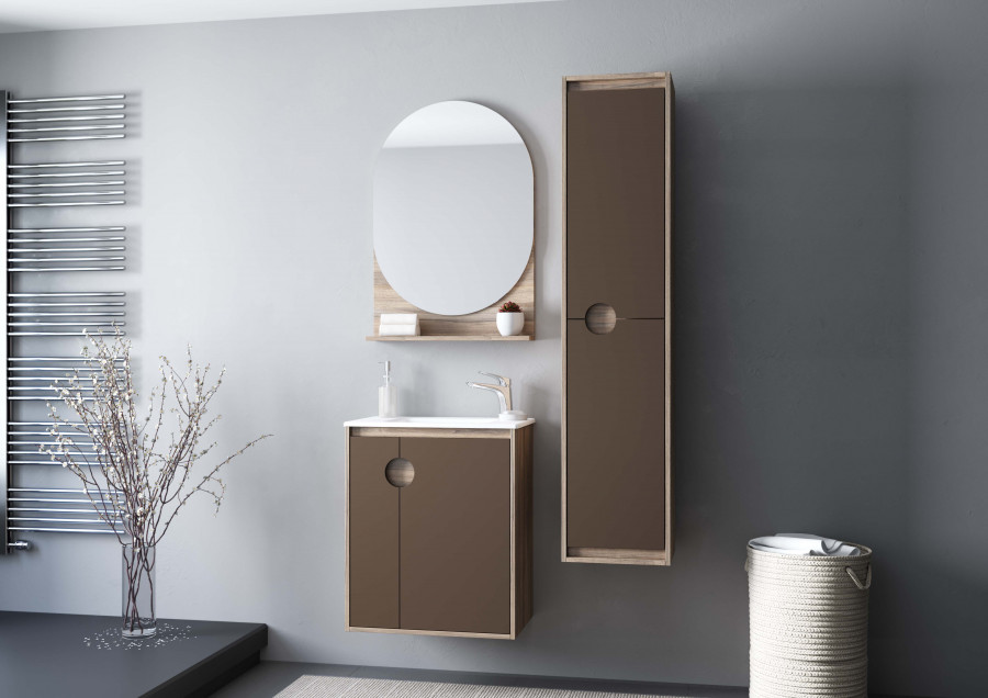 Тумба Анси» подвесная, с распашными дверками выполнена в современном минималистичном стиле. Роль ручек играют круглые отверстия, которые придают мебели оригинальный вид. Тумба совместима с раковиной Debba, скрывает коммуникации и не затрудняет доступ для их осмотра. Корпус тумбы изготовлен из ДСП (древесно-стружечной плиты), покрыт полимерной меламиновой пленкой, устойчивой к влаге и механическим повреждениям. Благодаря матовой фактуре на покрытии незаметны разводы и следы от капель воды. Цвет - шоколад (боковины древесные). Особенности тумбы Анси»: благодаря лаконичному дизайну выглядит гармонично и стильно в современном интерьере ванной; снабжена системой плавного закрывания дверок, которая обеспечивает их бесшумную и мягкую работу; укомплектована регулируемой внутренней полкой, которую можно установить на любой удобной высоте.