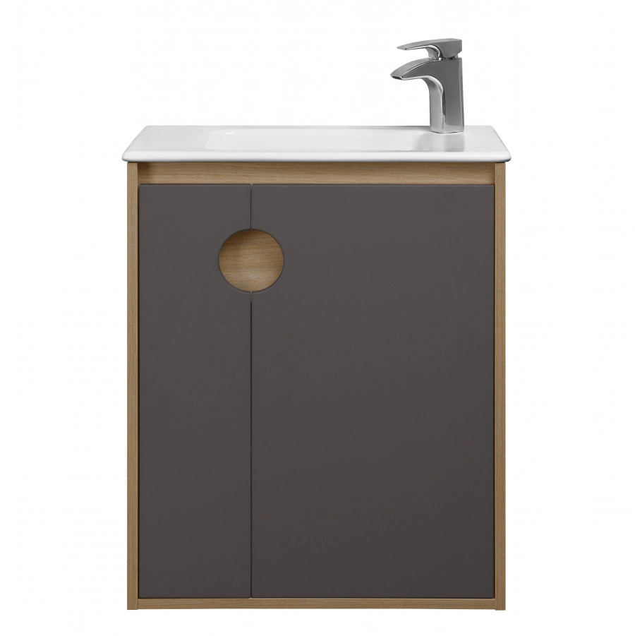Тумба Анси» подвесная, с распашными дверками выполнена в современном минималистичном стиле. Роль ручек играют круглые отверстия, которые придают мебели оригинальный вид. Тумба совместима с раковиной Debba, скрывает коммуникации и не затрудняет доступ для их осмотра. Корпус тумбы изготовлен из ДСП (древесно-стружечной плиты), покрыт полимерной меламиновой пленкой, устойчивой к влаге и механическим повреждениям. Благодаря матовой фактуре на покрытии незаметны разводы и следы от капель воды. Цвет - шоколад (боковины древесные). Особенности тумбы Анси»: благодаря лаконичному дизайну выглядит гармонично и стильно в современном интерьере ванной; снабжена системой плавного закрывания дверок, которая обеспечивает их бесшумную и мягкую работу; укомплектована регулируемой внутренней полкой, которую можно установить на любой удобной высоте.