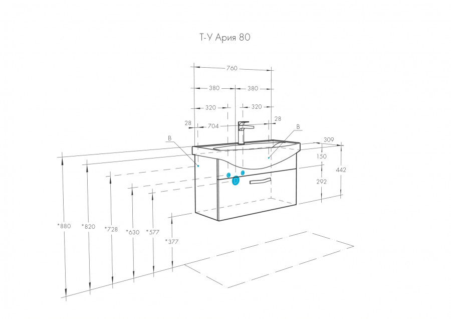 Тумба под раковину AQUATON Ария 80 тёмно-коричневый 1A141701AA430