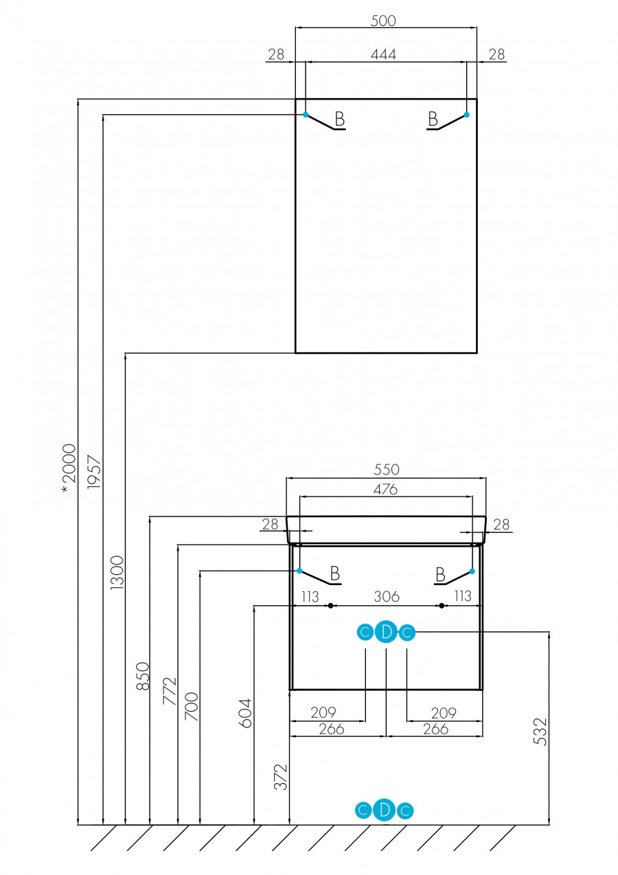 Тумба под раковину AQUATON Асти 55 белый глянец, ясень шимо 1A263101AXD70