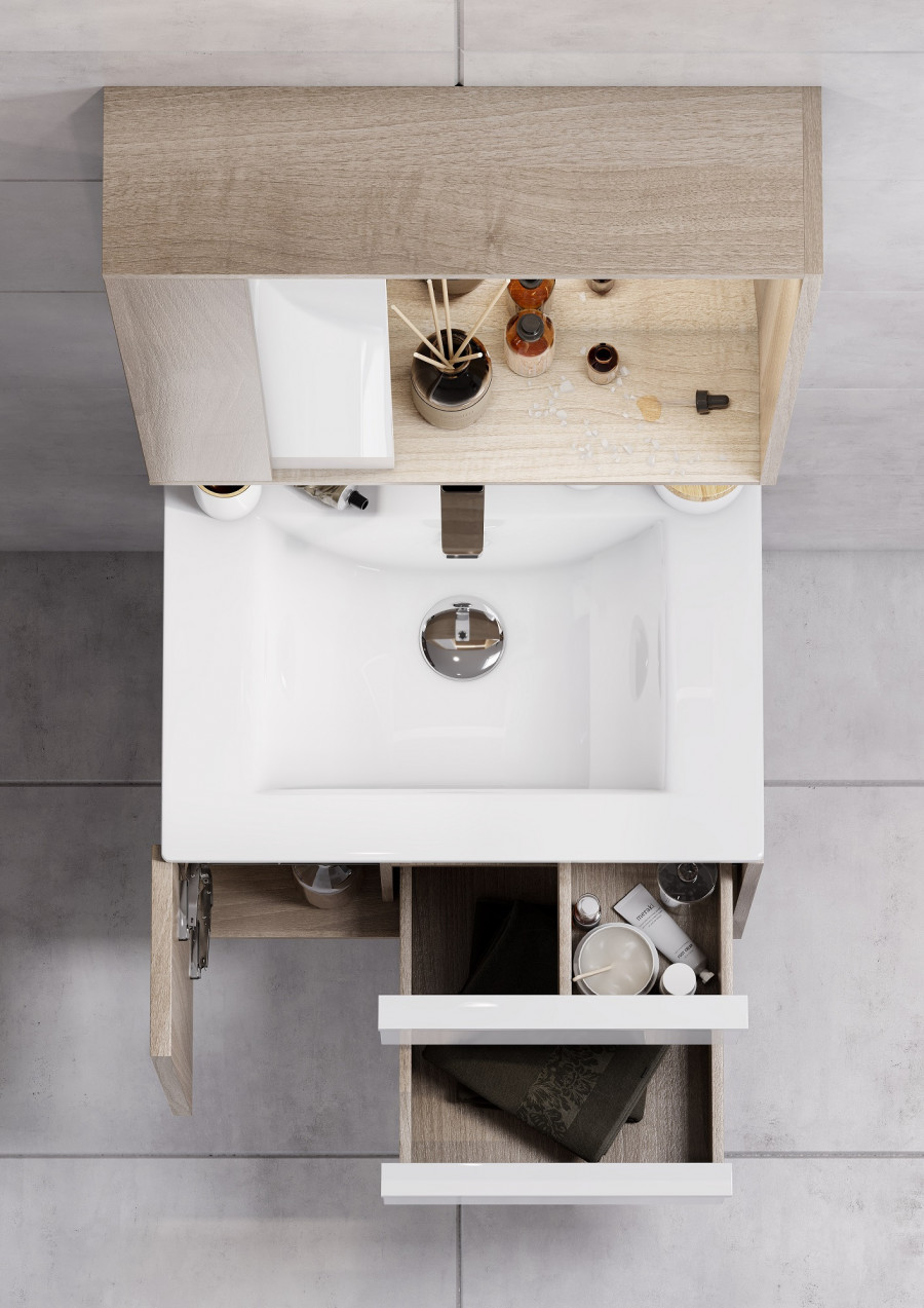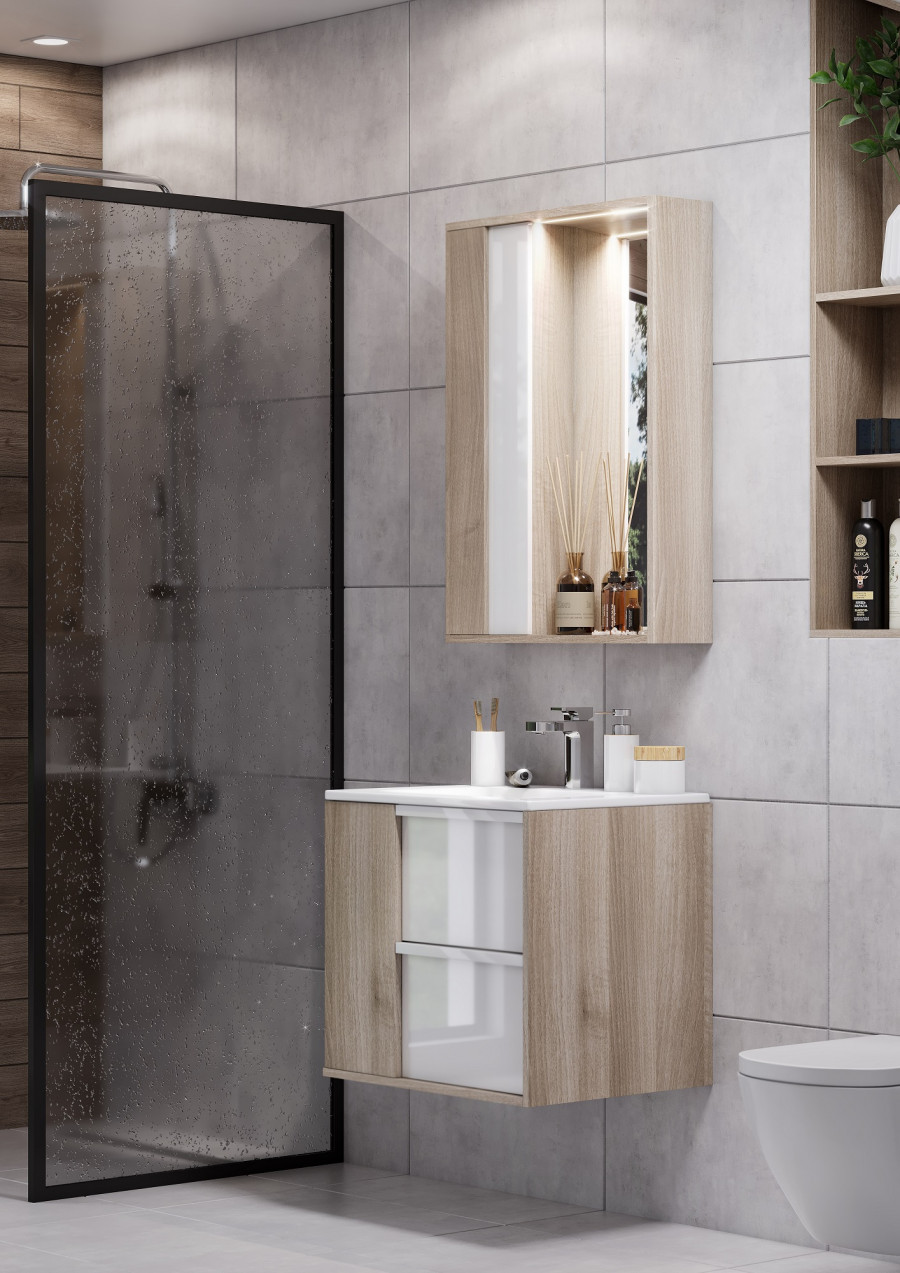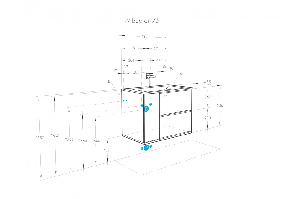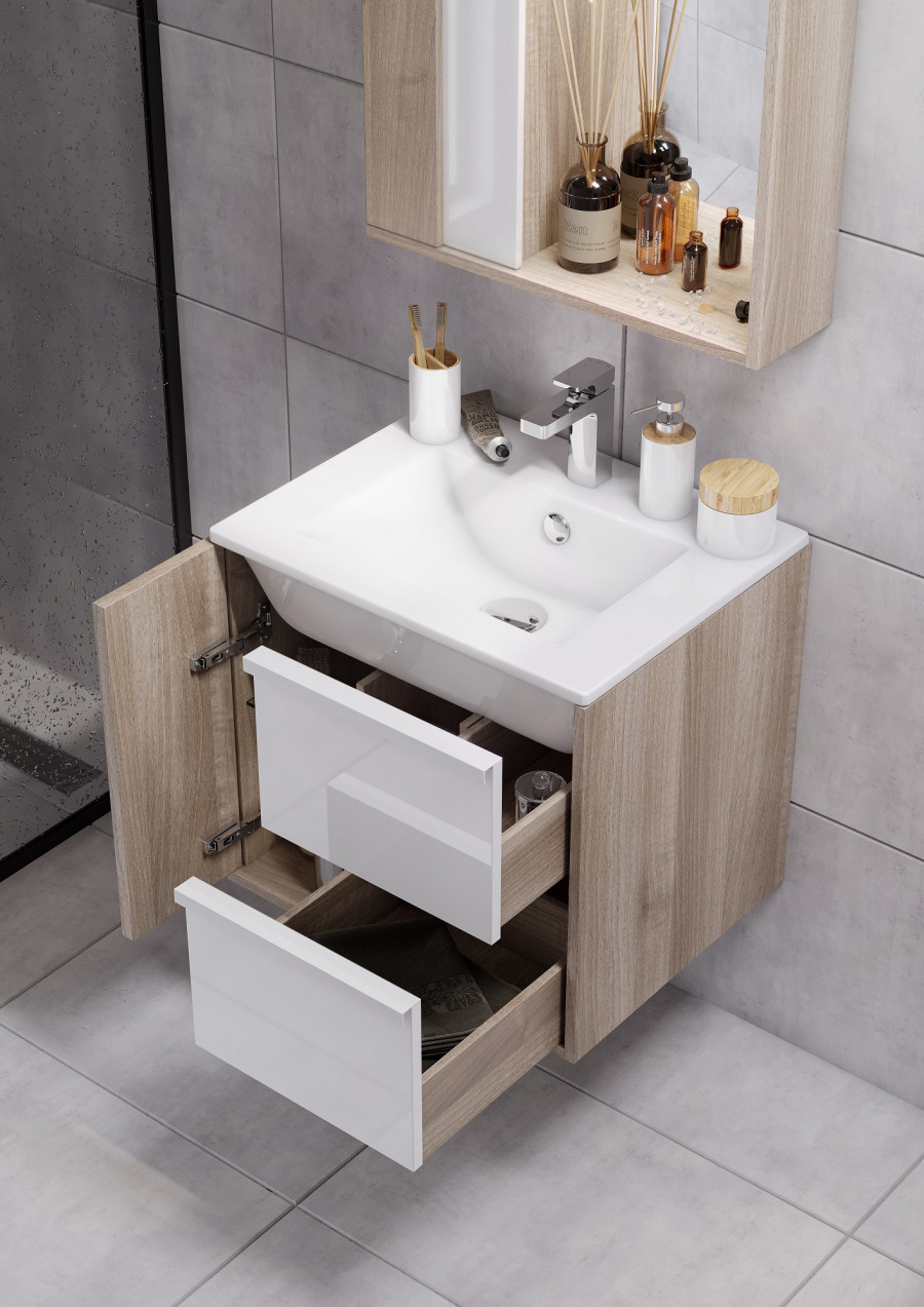 Дизайн элегантной и вместительной тумбы Бостон 75 от AQUATON в современном стиле сочетает в себе два цвета отделки - белоснежный глянец и древесный декор под натуральное дерево. Выполненная из влагостойкой ламинированной плиты тумба обладает простым и удобным функционалом. Слева за распашным фасадом-створкой находится отделение с регулируемой по высоте стеклянной полкой. Справа расположены белоснежные фасады, которые открываются с помощью профильной ручки от европейского производителя. Удобство и комфорт при использовании обеспечивают ящики и петли с доводчиками. Тумба комплектуется прямоугольной керамической раковиной Квадро.