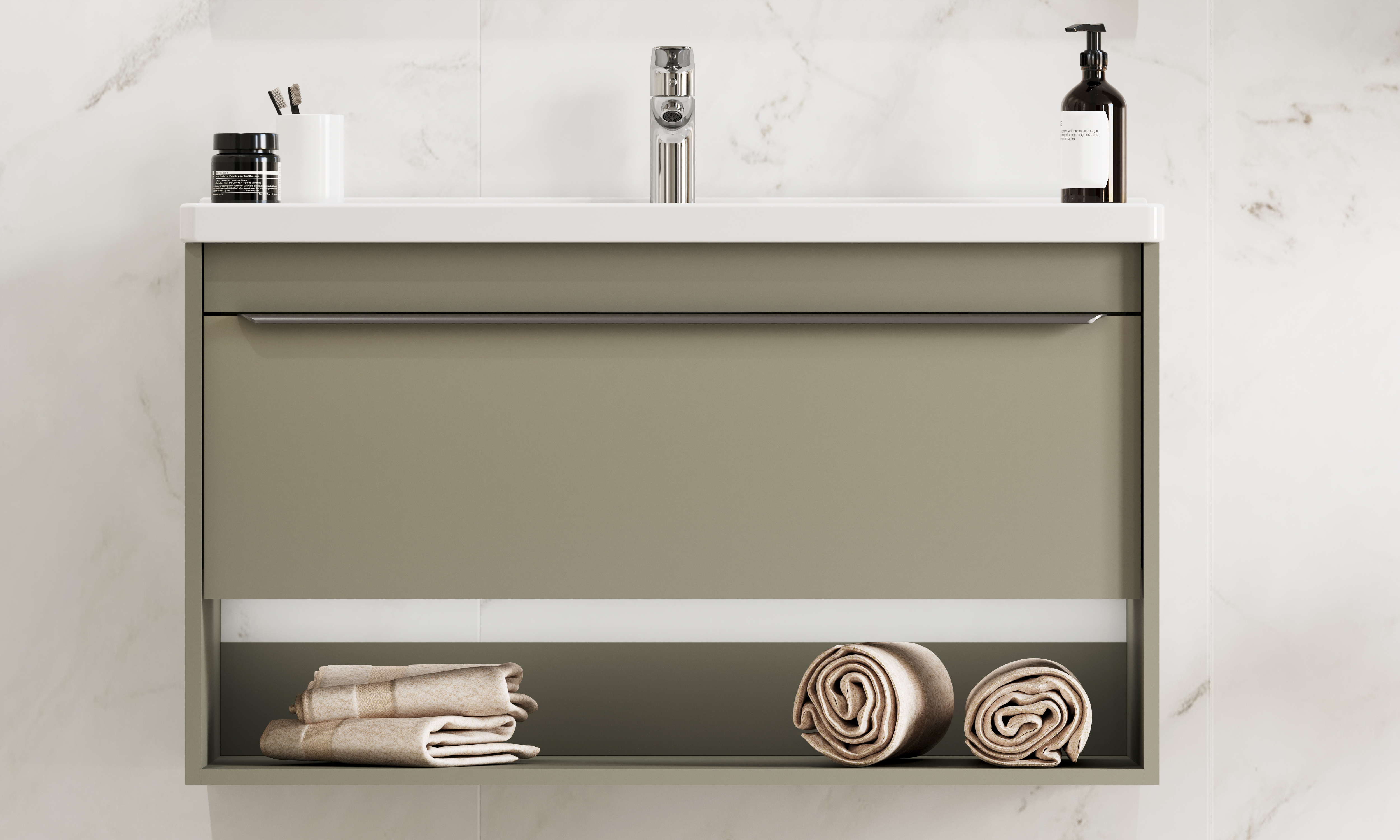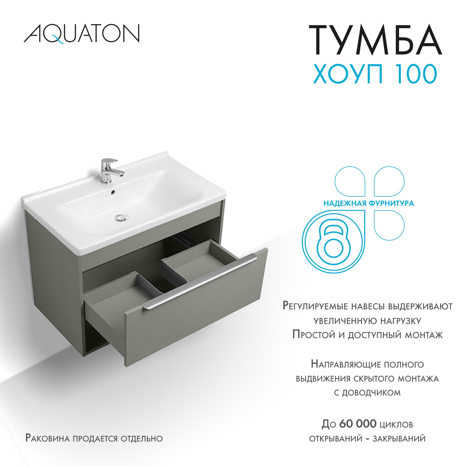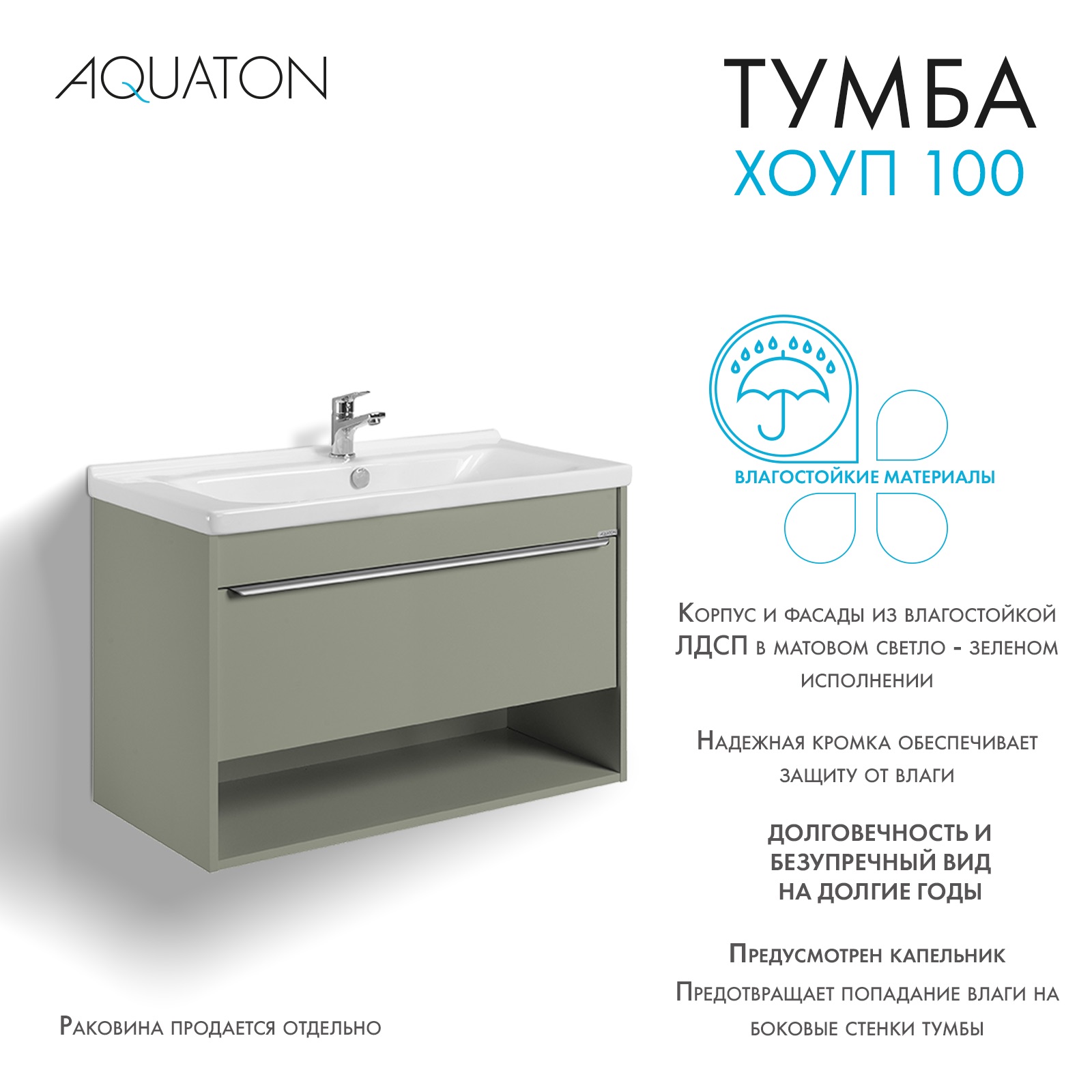 Тумба под раковину AQUATON Хоуп 100, 1 ящик, хаки, 1A287401HP9D0