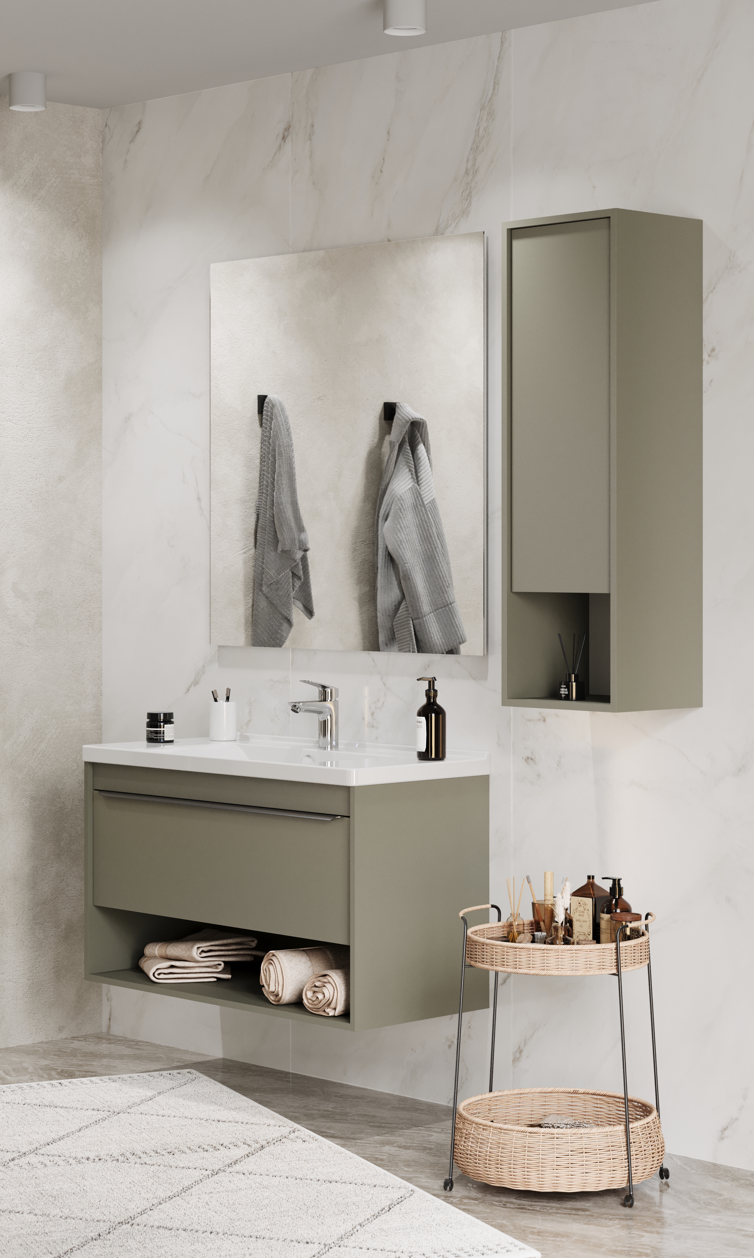 Тумбы для ванной комнаты коллекции Хоуп — это идеальное сочетание простоты линий и функциональности, которое преобразит ваше пространство. Каждая тумба в этой коллекции создана с вниманием к деталям и стремлением к гармонии, что делает их не только практичными, но и эстетически привлекательными. Элегантные линии и современный дизайн подчеркивают утонченность интерьера, а использование влагостойкой ЛДСП гарантирует долговечность и простоту в уходе. Удобная ручка добавляет нотку изысканности, а открытая ниша предоставляет возможность организовать пространство так, как вам удобно — будь то размещение любимых аксессуаров или необходимых принадлежностей. Корпус и фасад выполнены из влагостокой ЛДСП в светло-зеленом цвете. Ручка в данной коллекции в трендовом цвете gun metal (вороненый металл). Изготовленная из алюминия, она не только привлекает внимание своим эстетичным дизайном, но и имеет надежный и удобный хват. Тумбы коллекции Хоуп за счет своих цветовых решений в белом, древесном и светло-зеленом исполнении идеально впишутся в любой стиль ванной комнаты, от минимализма до классики, создавая атмосферу уюта и комфорта. Они не только помогут поддерживать порядок, но и станут ярким акцентом вашего интерьера. Направляющие полного выдвижения скрытого монтажа с доводчиком позволят использовать весь функционал ящиков бесшумно и с комфортом, а открытая ниша дает возможность убирать туда необходимы принадлежности, чтобы они всегда были под рукой. Высота полезного пространства - 160 мм. Реальный цвет изделий может отличаться от представленных изображений. Производитель оставляет за собой право в любой момент, без обязательного извещения, вносить изменения в комплектацию, дизайн и характеристики , не ухудшающие качество товара.