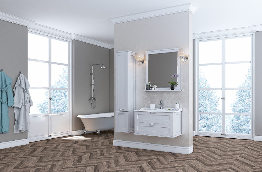 Широкая подвесная тумба под раковину Леон 80 от бренда AQUATON в стильной отделке белый дуб создана для любителей классического дизайна, но при этом предпочитающих современные материалы. Корпус и фасады выполнены из высококачественной МДФ, покрытой матовой пленкой. В тумбе установлены два ящика с системой плавного выдвижения и доводчиками, которые обеспечивают удобство при использовании. Классическую эстетику модели подчеркивают изящные ручки от европейского производителя.