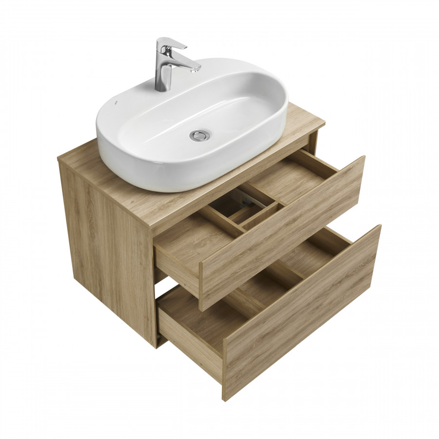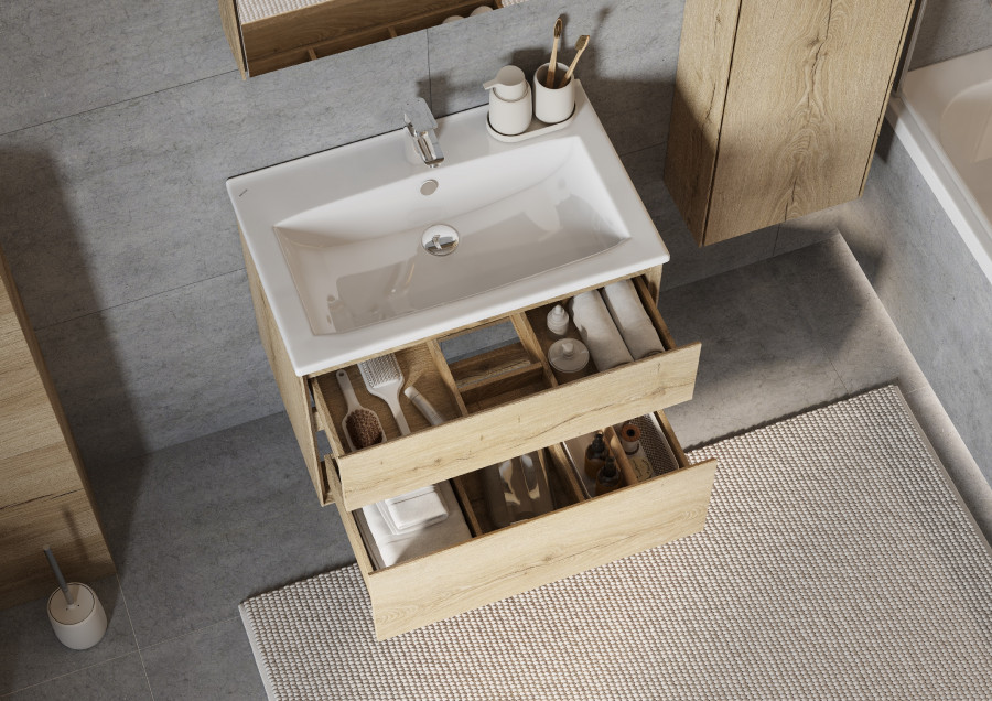 Коллекция мебели Либерти предлагает функциональные и эстетичные решения для ванных комнат. Тумбы с 2 ящиками выполнены в едином цветовом решении, что придает им гармоничный и стильный вид. Корпус, фасады и внутренняя организация тумб изготовлены из влагостойкой ЛДСП, имитирующей текстуру дерева. Боковины тумб обработаны по особой технологии, создающей эффект тонких линий и в то же время сохраняющей надежность конструкции. Ящики открывваются одним нажатием, так как оснащены механизмом Push-to-Open, гарантирующим плавное открывание и закрывание. В тумбах с ящиками размером от 70 см предусмотрена регулируемая система хранения, которая позволяет организовать пространство внутри ящика максимально эффективно. Это обеспечивает комфортное хранение вещей в ванной комнате. Тумбы Либерти с 2 ящиками могут быть дополнены мебельной раковиной “Элина”, которая отличается вместительной чашей и изящными бортами. Также они совместимы с накладными раковинами Roca Mila, Santek Одри и Aquaton Лола, что позволяет выбрать наиболее подходящий вариант для вашего интерьера. В целом, коллекция мебели Либерти отличается простотой и элегантностью, идеально сочетая функциональность и стиль. Она станет отличным выбором для тех, кто ценит качество, комфорт и эстетику в интерьере ванной комнаты.