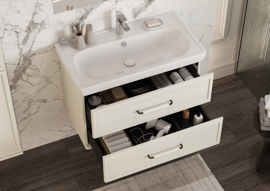 Тумба под раковину AQUATON Нео-Классика 85 2 ящика белый камень 1A286301NCTG0
