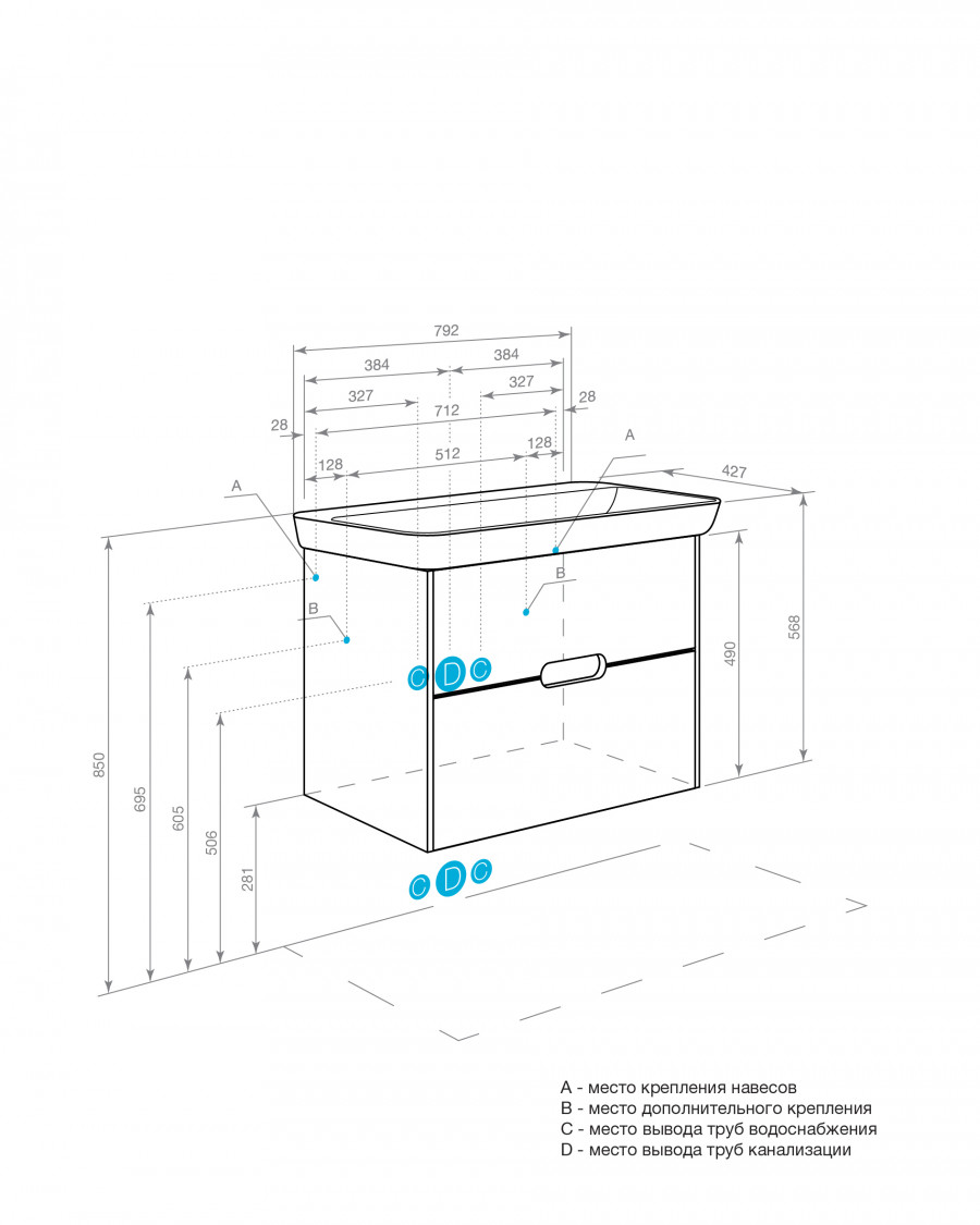 Корпус тумбы Оливия изготовлен из влагостойкой ламинированной ДСП с текстурой натурального дерева, а фасады ящиков в пленке от европейского производителя надежно защитят мебель от воздействия влаги в условиях ванной комнаты. Ящики установлены на направляющие полного выдвижения с доводчиками, что обеспечит легкий доступ ко всем предметам, которые хранятся в ящиках. Корпус и внутренние детали ящиков выполнены в единой цветовой гамме. Необычный вырез на фасадах создает имитацию ручки: оригинальный дизайн тумбы без выступающих деталей и комфортное использование. Размер ручки 18 см. К тумбе подойдет удобная современная керамическая раковина Адриана от бренда Santek.