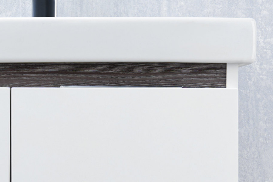 Подвесная тумба Рене 80 от AQUATON в комбинированной отделке белый глянец и грецкий орех отличается изысканной простотой, практичностью и функциональностью. Корпус из влагостойкой ЛДСП и фасады из высококачественной МДФ отлично подходят для пространств с повышенной влажностью. Контрастное сочетание белого глянца и стильной расцветки грецкий орех добавляет модели выразительности. Тумба достаточно вместительна и предлагает удобную систему внутренней организации: в центре находятся два выдвижных ящика со встроенной системой плавного выдвижения, а слева и справа за фасадами-створками скрыты дополнительные отсеки для хранения. Ручки, изящно интегрированные в фасады, обеспечивают удобную и комфортную эксплуатацию. Строгий и лаконичный дизайн модели подчеркивает гладкая поверхность фасадов без выступающих элементов.