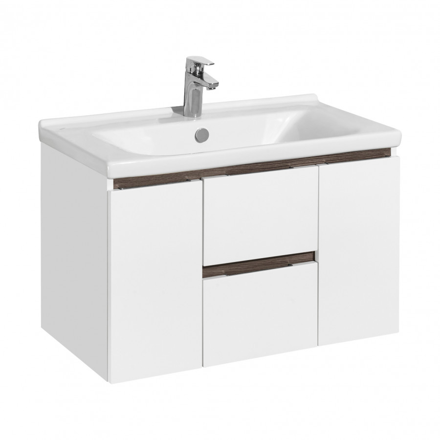 Тумба под раковину AQUATON Рене 80 белый, грецкий орех 1A222201NRC80