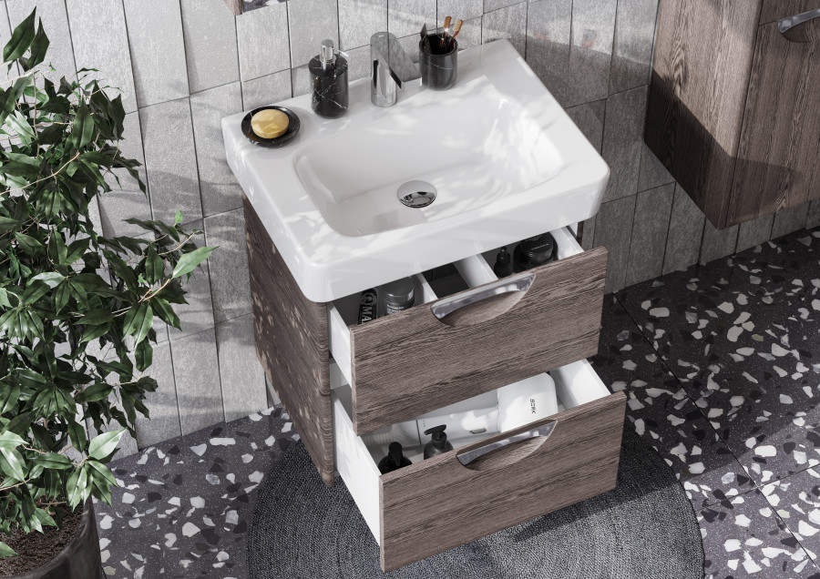Элегантная тумба Сильва 60 от AQUATON в эффектной отделке дуб макиато - это оптимальное сочетание практичной функциональности, утонченной красоты древесных мотивов и современного дизайна. Фасады и боковые стенки тумбы выполнены из МДФ в пленке, а корпус - из влагостойкой ЛДСП. Два вместительных ящика с направляющими плавного выдвижения комфортны в использовании и позволяют компактно разместить все необходимые принадлежности. Изящная удобная врезная ручка гармонично дополняет дизайн тумбы. При покупке прямоугольной керамической раковины Нео от Santek эта модель прекрасно впишется в скандинавский стиль, подчеркнет эстетику минимализма, лофта и хай-тека. Помимо стандартного подключения водоснабжения и канализации из стены, предусмотрена возможность подключения снизу.