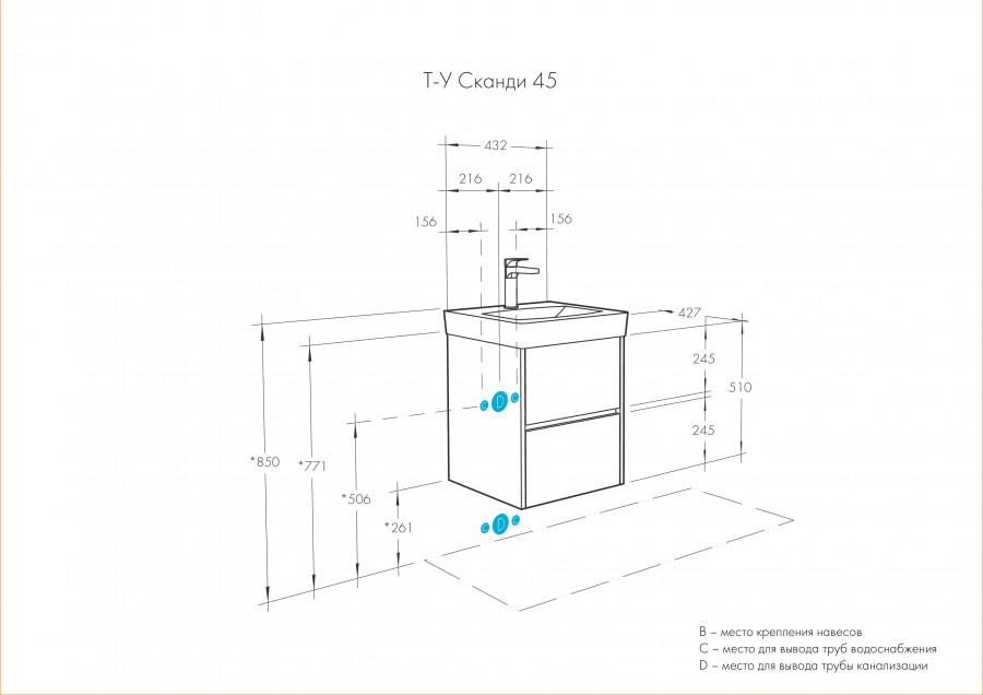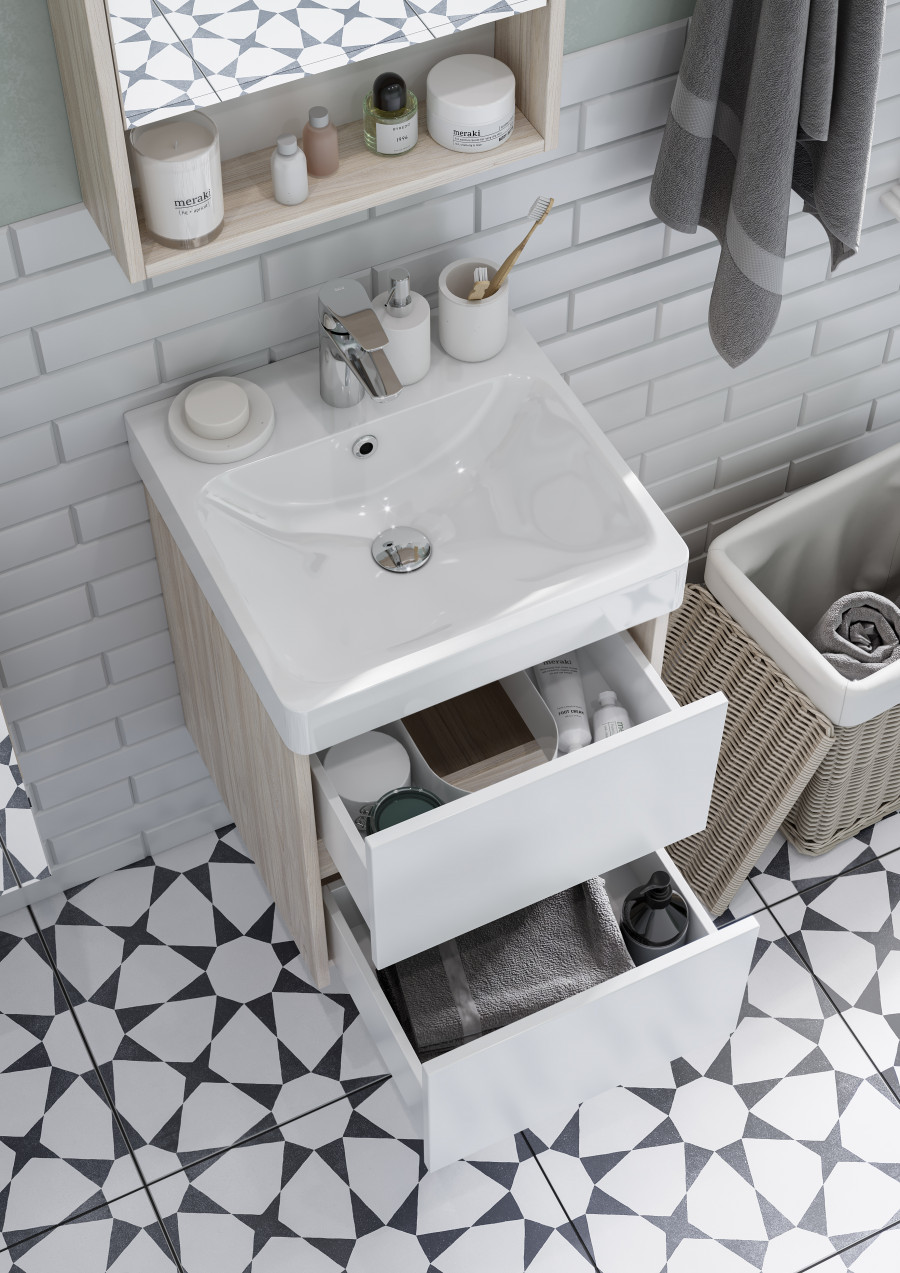 Тумба под раковину AQUATON Сканди 45 белая, дуб верона 1A251601SDB20