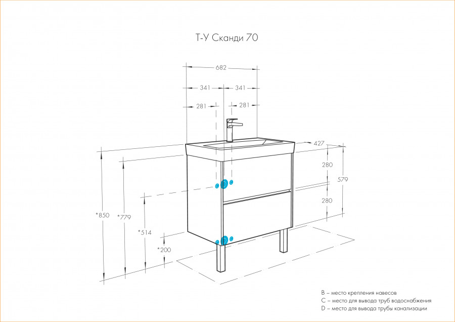 Тумба Сканди 70 выполнена в популярном минималистичном скандинавском стиле. Корпус тумбы выполнен из влагостойкой ЛДСП в белой матовой покраске, а фасады в белой глянцевой покраске. Конструктивно тумба состоит из 2 вместительных ящиков, установленных на направляющие с интегрированной системой push-to-open для комфортного использования. На тумбе нет выступающих деталей и фурнитуры, открытие ящиков реализовано нажатием на фасад. К тумбе идеально подходит белоснежная раковина Адриана от бренда Santek. Раковина продается отдельно. Тумбу по желанию можно использовать в двух вариантах: как подвесную или дополнительно приобрести опоры
