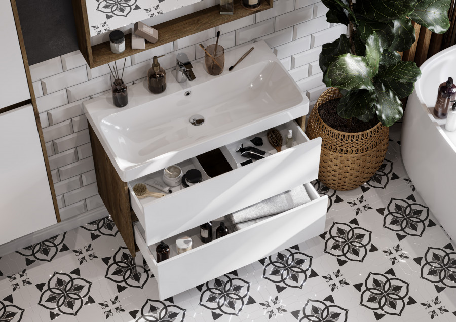 Тумба под раковину AQUATON Сканди 90 белая, дуб рустикальный 1A251901SDZ90