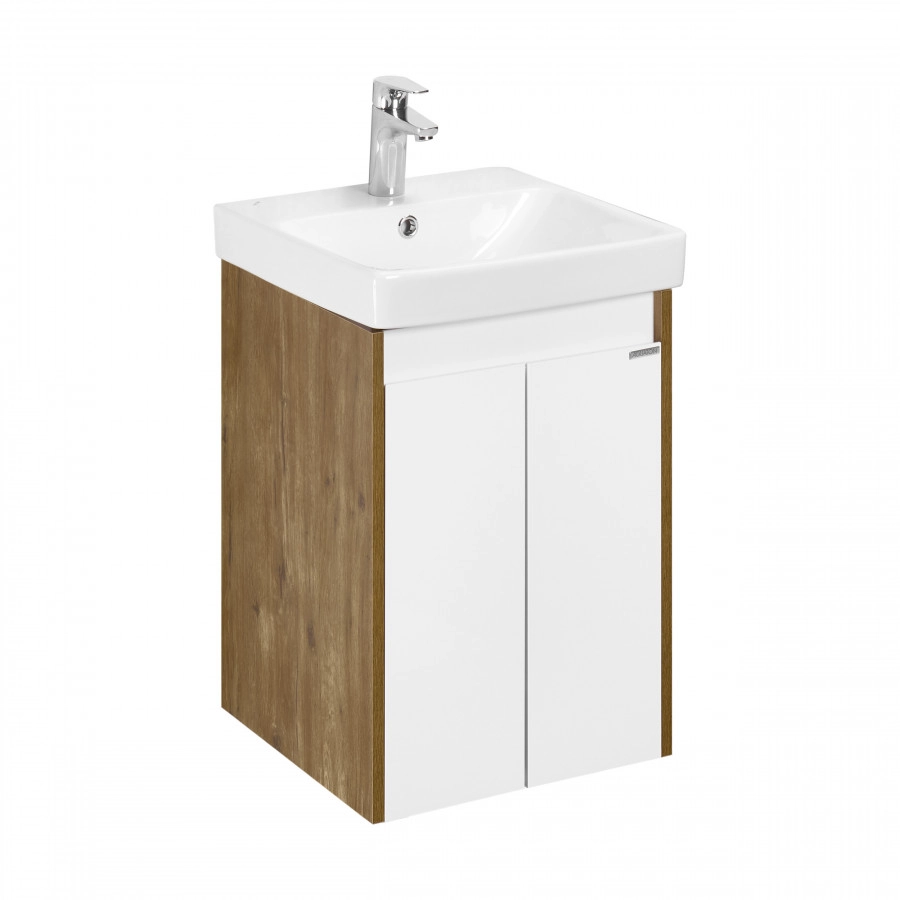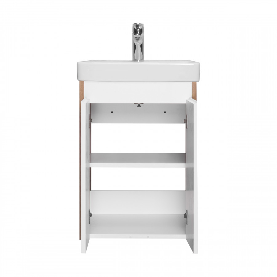 Тумба под раковину AQUATON Сканди Doors 45 белый глянец, дуб рустикальный, 1A278701SDZ90