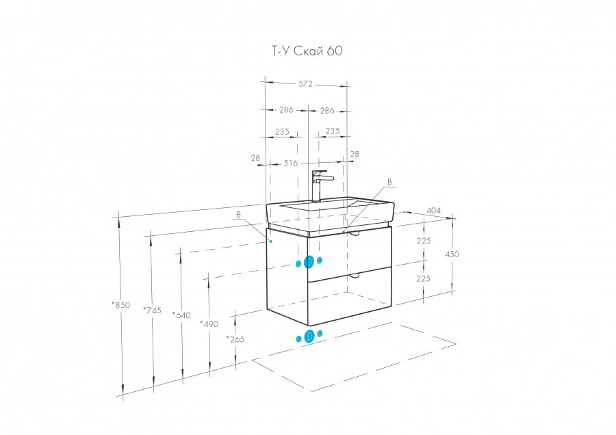 Тумба под раковину AQUATON Скай PRO 60 белый глянец 1A238201SY010