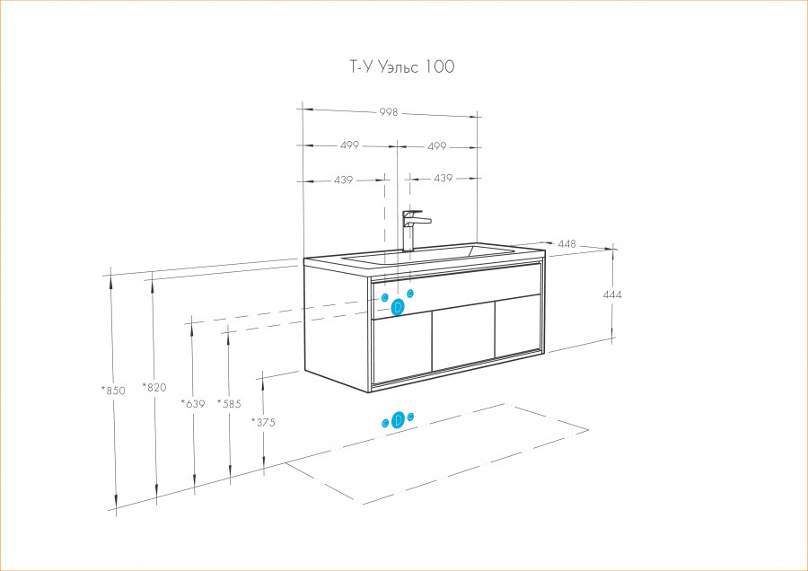 Тумба под раковину AQUATON Уэльс 100 графит 1A267601WA6A0 new