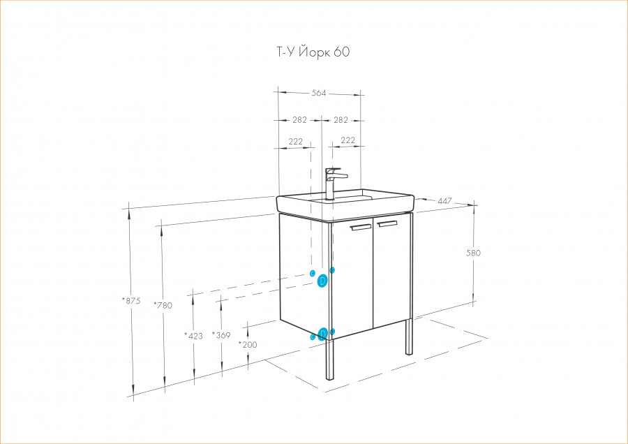 Тумба под раковину Йорк 60 от AQUATON - стильное и практичное решение для современных ванных комнат. Конфигурация модели достаточно проста и не предусматривает лишних деталей. Корпус выполнен из влагостойкой ЛДСП в отделке выбеленное дерево, а фасады изготовлены из МДФ и покрашены в белый цвет полиэфирной краской ультрафиолетового отверждения. За двумя распашными дверцами расположена полка и вместительное пространство для хранения. Удобство при использовании обеспечивают петли с доводчиками и оригинальная фурнитура от европейских производителей.