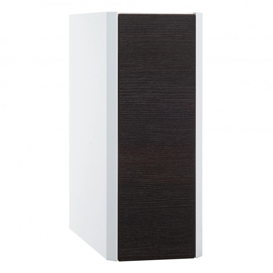 Подвесной шкафчик Брук изготовлен из влагостойкой ламинированной плиты и высококачественной МДФ, окрашен в белый цвет с высокой степенью глянца полиэфирной краской ультрафиолетового отверждения, фасад покрыт матовой пленкой в темном древесном цвете. За фасадом расположена бутылочница, на которой удобно разместить все необходимые в ванной комнате принадлежности. Направляющая Quadro V6 25 надвижного монтажа, полного выдвижения, c механизмом Push to open, выдерживает нагрузку до 25 кг на пару. Шкафчик можно использовать как отдельно, так и компонуя его с другими модулями серии.