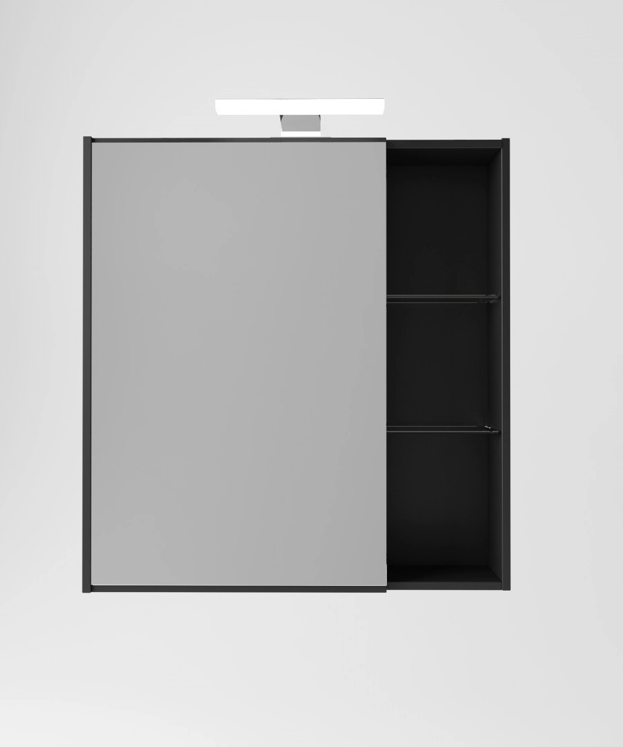 Компактный, вместительный зеркальный шкаф Амели отличается простым и лаконичным дизайном, гармонично дополняя интерьер как компактной, так и просторной ванной комнаты. Корпус зеркального шкафа выполнен из влагостойкой ДСП в цвете антрацит. Фасад оснащен петлями с доводчиками, которые обеспечивают плавное и почти бесшумное закрывание дверцы. Зеркальный шкаф оснащен LED-светильником, который экономит до 50% электроэнергии.