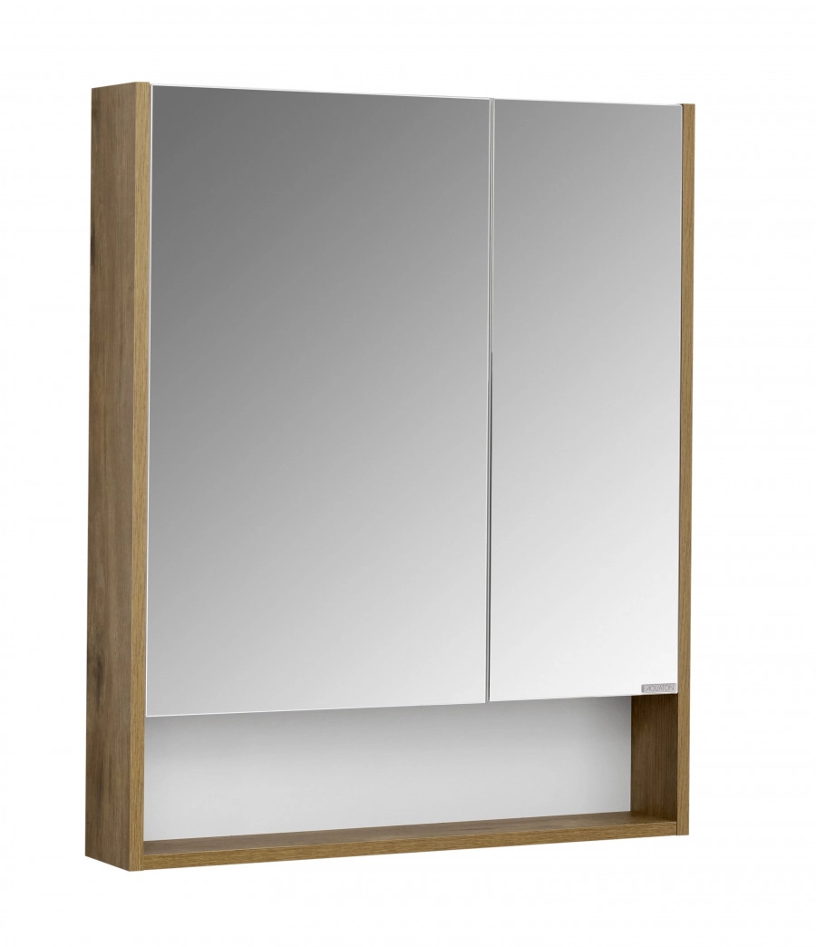 Внутреннее пространство зеркального шкафа разделено на ассиметричные секции, которые позволят хранить косметические средства различного объема и высоты. По желанию можно дополнительно приобрести светильник.