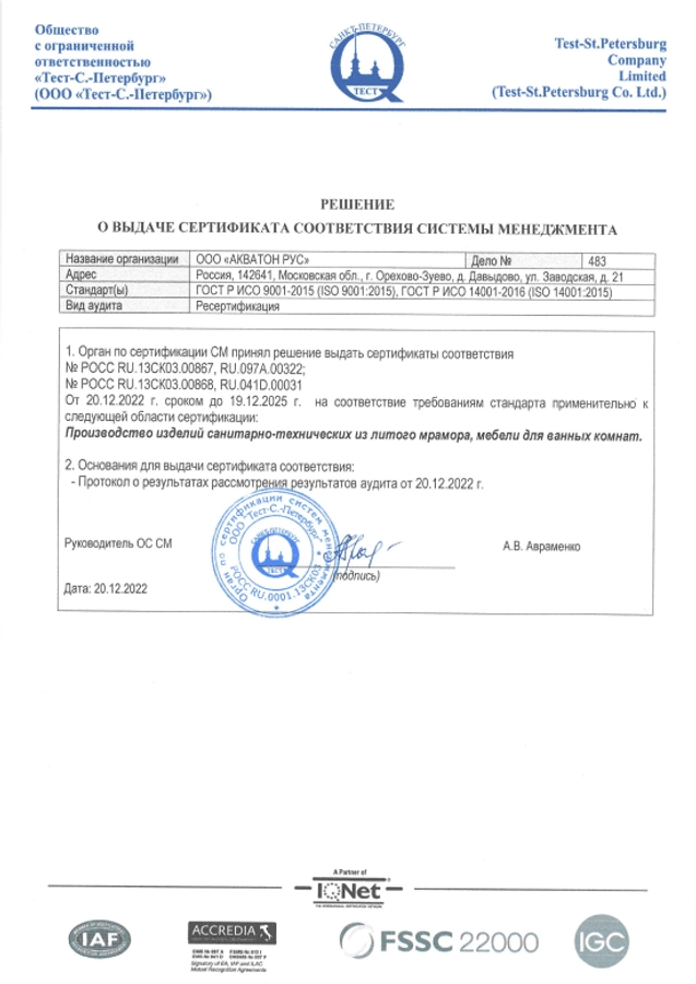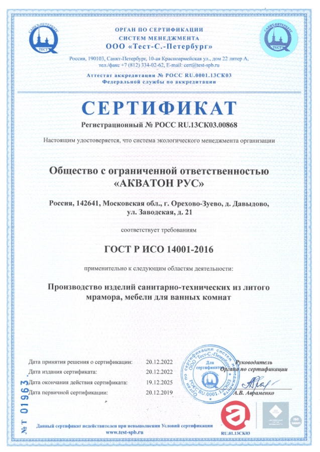 Сертификат соответствия ГОСТ ISO 14001:2016