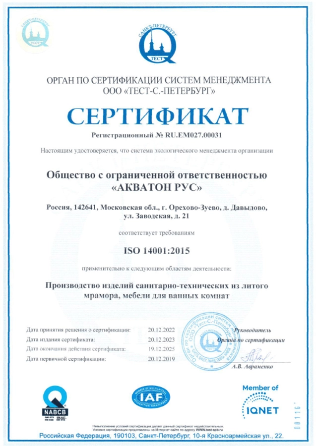 Сертификат соответствия ISO 14001:2015