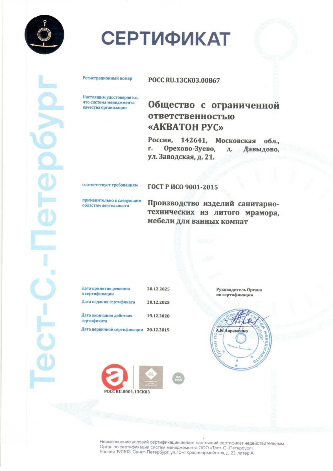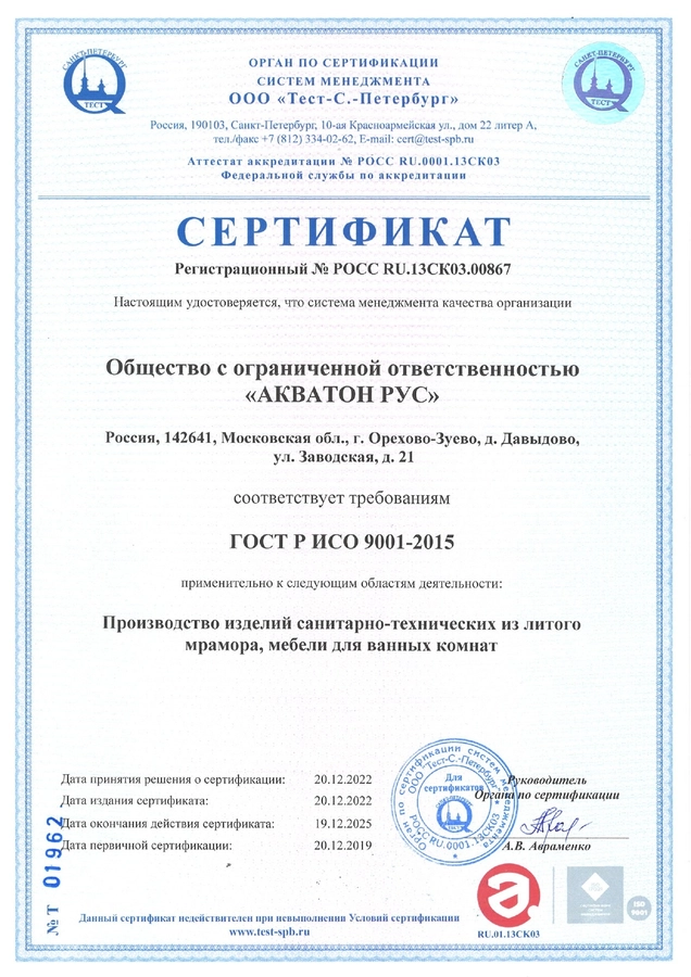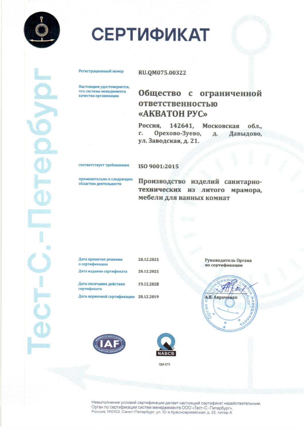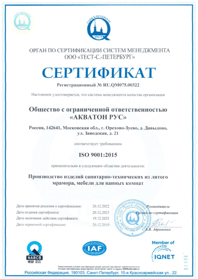 Сертификат соответствия ISO 9001:2015